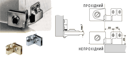 Петлі для скла (зотоло, хром, чорна) + монтаж