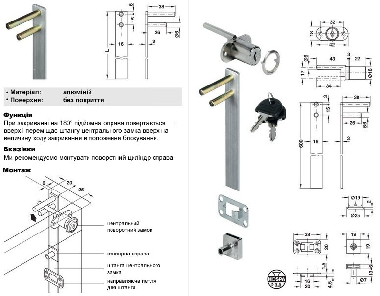 Замок центральний L=600, хром